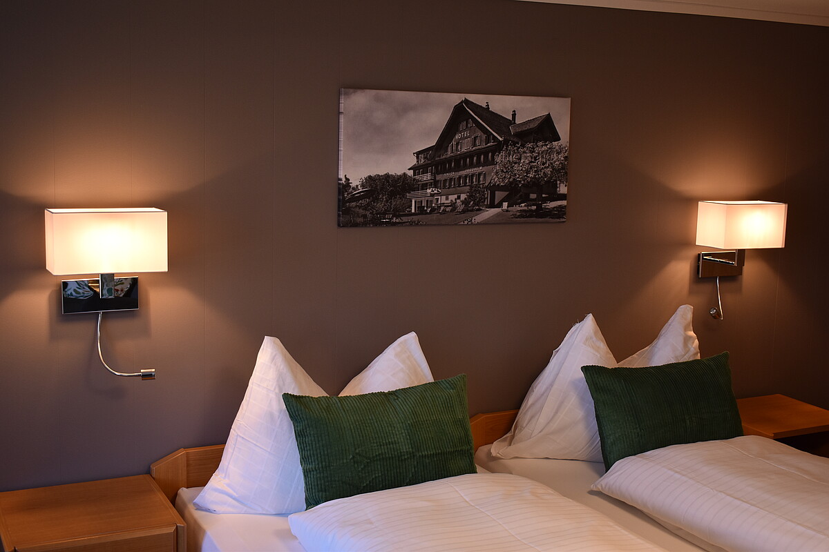Gemütliche Zimmer, die Ihnen für Ihre Aufenthaltsdauer ein behagliches Zuhause bieten, kleine Details und warme Farben machen sie wohnlich. Sie haben renovierte kleine Bäder oder ältere, die dafür etwas grösser sind.